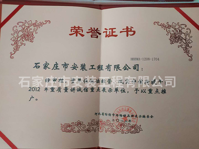 2012年重質(zhì)量講誠(chéng)信重點(diǎn)展示單位